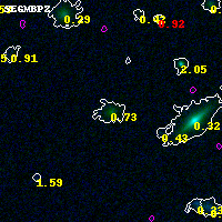 Black segments are analyzed here. Roll mouse over color images to view segments. Best viewed in a wide browser window (1200 pixels or more). Download SED & P(z) plots to view larger versions.