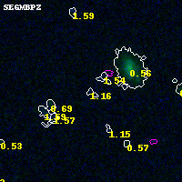 Black segments are analyzed here. Roll mouse over color images to view segments. Best viewed in a wide browser window (1200 pixels or more). Download SED & P(z) plots to view larger versions.