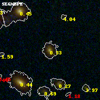 Object #1008   x,y = (2614, 1808)   RA, Dec = (03:58:51.624, -29:56:36.24) = (59.71510, -29.94340)   BPZ = 0.332 [0.247--0.374]   type = 3.50 (Ell4_A_0 - Ell5_A_0)   stellarity = 0.03   chisq2 = 0.02   ODDS = 0.87   z_cluster = 0.425