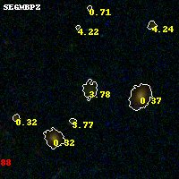 Black segments are analyzed here. Roll mouse over color images to view segments. Best viewed in a wide browser window (1200 pixels or more). Download SED & P(z) plots to view larger versions.