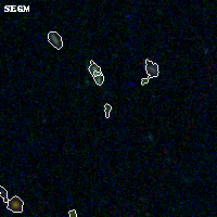 Black segments are analyzed here. Roll mouse over color images to view segments. Best viewed in a wide browser window (1200 pixels or more). Download SED & P(z) plots to view larger versions.