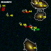 Black segments are analyzed here. Roll mouse over color images to view segments. Best viewed in a wide browser window (1200 pixels or more). Download SED & P(z) plots to view larger versions.