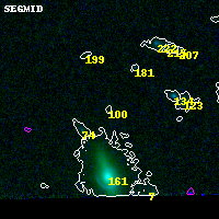 Object #100 x,y = (4624, 254) RA, Dec = (04:54:06.984, 02:52:07.32) = (73.52910, 2.86870) BPZ = 0.914 [0.193--3.760] type = 9.00 (SB2_B10) chisq2 = 0.11 ODDS = 0.08 z_cluster = 0.203