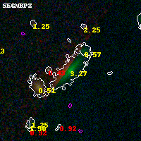 Object #1004 x,y = (5999, 797) RA, Dec = (04:54:01.464, 02:52:40.08) = (73.50610, 2.87780) BPZ = 3.268 [0.951--3.401] type = 4.80 (ES0_B10 - Ell4_A_0) chisq2 = 0.00 ODDS = 0.79 z_cluster = 0.203