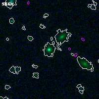 Object #10061 x,y = (6567, 3964) RA, Dec = (04:53:59.184, 02:55:49.80) = (73.49660, 2.93050) BPZ = 0.731 [0.691--1.101] type = 5.10 (ES0_B10 - Sbc_B10) chisq2 = 0.00 ODDS = 0.88 z_cluster = 0.203