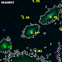 Object #10403 x,y = (2799, 7530) RA, Dec = (04:54:14.280, 02:59:24.00) = (73.55950, 2.99000) BPZ = 0.135 [0.095--0.365] type = 5.20 (ES0_B10 - Sbc_B10) chisq2 = 0.00 ODDS = 0.60 z_cluster = 0.203