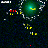 Object #10521 x,y = (1991, 7463) RA, Dec = (04:54:17.520, 02:59:20.04) = (73.57300, 2.98890) BPZ = 0.334 [0.155--3.445] type = 9.90 (SB3_B10 - SB2_B10) chisq2 = 0.03 ODDS = 0.06 z_cluster = 0.203