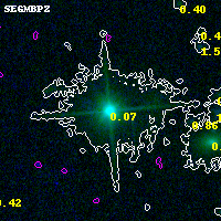 Object #10593 x,y = (2137, 6855) RA, Dec = (04:54:16.944, 02:58:43.32) = (73.57060, 2.97870) BPZ = 0.070 [0.042--0.302] type = 5.20 (ES0_B10 - Sbc_B10) chisq2 = 0.00 ODDS = 0.80 z_cluster = 0.203
