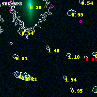 Object #10604 x,y = (2960, 7367) RA, Dec = (04:54:13.632, 02:59:14.28) = (73.55680, 2.98730) BPZ = 1.395 [0.178--3.008] type = 9.00 (SB2_B10) chisq2 = 0.20 ODDS = 0.10 z_cluster = 0.203