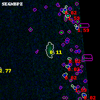 Object #10623 x,y = (3817, 7350) RA, Dec = (04:54:10.200, 02:59:13.20) = (73.54250, 2.98700) BPZ = 0.114 [0.058--3.382] type = 4.10 (Ell4_A_0 - ES0_B10) chisq2 = 0.01 ODDS = 0.68 z_cluster = 0.203