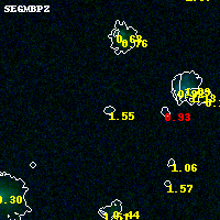 Object #10825 x,y = (1098, 7213) RA, Dec = (04:54:21.096, 02:59:04.92) = (73.58790, 2.98470) BPZ = 1.552 [0.175--2.746] type = 9.30 (SB2_B10 - SB3_B10) chisq2 = 0.01 ODDS = 0.11 z_cluster = 0.203