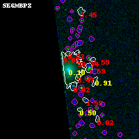 Object #11110 x,y = (270, 7419) RA, Dec = (04:54:24.408, 02:59:17.16) = (73.60170, 2.98810) BPZ = 0.104 [0.022--0.517] type = 6.70 (Scd_B10 - Sbc_B10) chisq2 = 0.00 ODDS = 0.37 z_cluster = 0.203