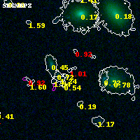 Object #11131 x,y = (3161, 7417) RA, Dec = (04:54:12.840, 02:59:17.16) = (73.55350, 2.98810) BPZ = 1.014 [0.298--2.736] type = 10.70 (SB11_A_0_l - SB3_B10) chisq2 = 1.64 ODDS = 0.11 z_cluster = 0.203
