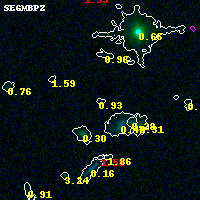 Object #11241 x,y = (1090, 6973) RA, Dec = (04:54:21.120, 02:58:50.52) = (73.58800, 2.98070) BPZ = 0.934 [0.215--2.826] type = 10.50 (SB11_A_0_l - SB3_B10) chisq2 = 0.45 ODDS = 0.09 z_cluster = 0.203