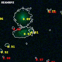 Object #11330 x,y = (1485, 6940) RA, Dec = (04:54:19.560, 02:58:48.36) = (73.58150, 2.98010) BPZ = 0.911 [0.770--2.231] type = 7.20 (Scd_B10 - SB1_B10) chisq2 = 0.00 ODDS = 0.29 z_cluster = 0.203