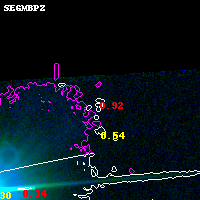 Object #11380 x,y = (6787, 6859) RA, Dec = (04:53:58.320, 02:58:43.68) = (73.49300, 2.97880) BPZ = 0.924 [0.283--2.605] type = 10.60 (SB11_A_0_l - SB3_B10) chisq2 = 4.25 ODDS = 0.20 z_cluster = 0.203