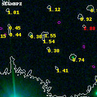 Object #11582 x,y = (1321, 6811) RA, Dec = (04:54:20.208, 02:58:40.80) = (73.58420, 2.97800) BPZ = 0.305 [0.142--3.873] type = 8.30 (SB1_B10 - SB2_B10) chisq2 = 0.14 ODDS = 0.05 z_cluster = 0.203