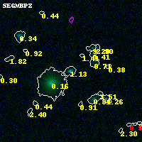 Object #11706 x,y = (989, 6761) RA, Dec = (04:54:21.528, 02:58:37.92) = (73.58970, 2.97720) BPZ = 1.134 [0.708--1.608] type = 9.00 (SB2_B10) chisq2 = 0.00 ODDS = 0.29 z_cluster = 0.203