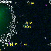 Object #11761 x,y = (2926, 6726) RA, Dec = (04:54:13.776, 02:58:35.76) = (73.55740, 2.97660) BPZ = 0.557 [0.095--2.703] type = 7.70 (SB1_B10 - Scd_B10) chisq2 = 0.00 ODDS = 0.38 z_cluster = 0.203