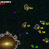 Object #1185 x,y = (5835, 986) RA, Dec = (04:54:02.136, 02:52:51.24) = (73.50890, 2.88090) BPZ = 1.470 [1.215--1.838] type = 7.50 (SB1_B10 - Scd_B10) chisq2 = 0.20 ODDS = 0.53 z_cluster = 0.203