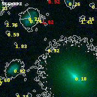 Object #12016 x,y = (1530, 6631) RA, Dec = (04:54:19.368, 02:58:30.00) = (73.58070, 2.97500) BPZ = 0.919 [0.165--2.444] type = 10.00 (SB3_B10) chisq2 = 0.23 ODDS = 0.11 z_cluster = 0.203