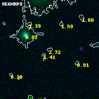 Object #12087 x,y = (3096, 6624) RA, Dec = (04:54:13.104, 02:58:29.64) = (73.55460, 2.97490) BPZ = 2.722 [0.371--3.070] type = 10.10 (SB3_B10 - SB11_A_0_l) chisq2 = 0.01 ODDS = 0.17 z_cluster = 0.203