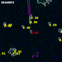 Object #12785 x,y = (6701, 6485) RA, Dec = (04:53:58.656, 02:58:21.36) = (73.49440, 2.97260) BPZ = 0.916 [0.293--3.735] type = 9.00 (SB2_B10) chisq2 = 1.69 ODDS = 0.13 z_cluster = 0.203