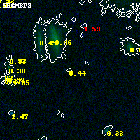 Object #12850 x,y = (2308, 6307) RA, Dec = (04:54:16.248, 02:58:10.56) = (73.56770, 2.96960) BPZ = 0.443 [0.149--3.932] type = 8.10 (SB1_B10 - SB2_B10) chisq2 = 0.00 ODDS = 0.06 z_cluster = 0.203