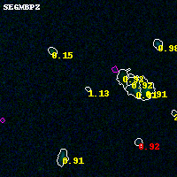 Object #13247 x,y = (3641, 6062) RA, Dec = (04:54:10.920, 02:57:55.80) = (73.54550, 2.96550) BPZ = 1.132 [0.170--3.645] type = 8.30 (SB1_B10 - SB2_B10) chisq2 = 0.00 ODDS = 0.08 z_cluster = 0.203