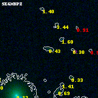 Object #13785 x,y = (6538, 5764) RA, Dec = (04:53:59.304, 02:57:37.80) = (73.49710, 2.96050) BPZ = 0.433 [0.095--2.655] type = 9.70 (SB3_B10 - SB2_B10) chisq2 = 0.00 ODDS = 0.10 z_cluster = 0.203