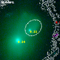 Object #13809 x,y = (6114, 5929) RA, Dec = (04:54:01.008, 02:57:47.88) = (73.50420, 2.96330) BPZ = 0.214 [0.153--0.254] type = 3.00 (Ell5_A_0) chisq2 = 0.00 ODDS = 0.91 z_cluster = 0.203