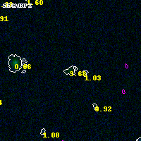 Object #14003 x,y = (5483, 5692) RA, Dec = (04:54:03.528, 02:57:33.48) = (73.51470, 2.95930) BPZ = 3.682 [0.120--4.185] type = 8.80 (SB2_B10 - SB1_B10) chisq2 = 0.03 ODDS = 0.60 z_cluster = 0.203