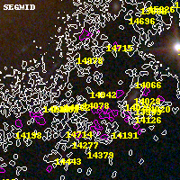Object #14042 x,y = (1580, 5628) RA, Dec = (04:54:19.176, 02:57:29.88) = (73.57990, 2.95830) BPZ = 0.141 [0.087--3.339] type = 10.20 (SB3_B10 - SB11_A_0_l) chisq2 = 0.46 ODDS = 0.25 z_cluster = 0.203