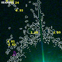 Object #14063 x,y = (2695, 5637) RA, Dec = (04:54:14.712, 02:57:30.24) = (73.56130, 2.95840) BPZ = 1.102 [0.590--1.921] type = 9.00 (SB2_B10) chisq2 = 0.00 ODDS = 0.19 z_cluster = 0.203