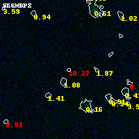 Object #14121 x,y = (4891, 5607) RA, Dec = (04:54:05.904, 02:57:28.44) = (73.52460, 2.95790) BPZ = 10.267 [0.575--10.406] type = 5.10 (ES0_B10 - Sbc_B10) chisq2 = 900.00 ODDS = 0.49 z_cluster = 0.203