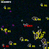 Object #14132 x,y = (1988, 5597) RA, Dec = (04:54:17.544, 02:57:28.08) = (73.57310, 2.95780) BPZ = 0.093 [0.074--2.798] type = 11.00 (SB11_A_0_l) chisq2 = 1.23 ODDS = 0.19 z_cluster = 0.203