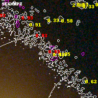 Object #14196 x,y = (1470, 6068) RA, Dec = (04:54:19.608, 02:57:56.16) = (73.58170, 2.96560) BPZ = 0.928 [0.495--2.495] type = 11.00 (SB11_A_0_l) chisq2 = 1.48 ODDS = 0.25 z_cluster = 0.203