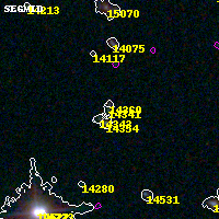 Object #14341 x,y = (1039, 5560) RA, Dec = (04:54:21.336, 02:57:25.56) = (73.58890, 2.95710) BPZ = 0.201 [0.114--3.410] type = 9.10 (SB2_B10 - SB3_B10) chisq2 = 1.69 ODDS = 0.22 z_cluster = 0.203