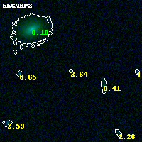 Object #14533 x,y = (6342, 5514) RA, Dec = (04:54:00.096, 02:57:23.04) = (73.50040, 2.95640) BPZ = 2.639 [0.156--3.462] type = 9.00 (SB2_B10) chisq2 = 0.02 ODDS = 0.14 z_cluster = 0.203