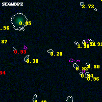 Object #14595 x,y = (3830, 5475) RA, Dec = (04:54:10.152, 02:57:20.52) = (73.54230, 2.95570) BPZ = 0.195 [0.090--4.064] type = 4.00 (Ell4_A_0) chisq2 = 0.08 ODDS = 0.12 z_cluster = 0.203