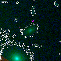 Object #14645 x,y = (3103, 5306) RA, Dec = (04:54:13.080, 02:57:10.44) = (73.55450, 2.95290) BPZ = 0.097 [0.066--0.397] type = 5.30 (ES0_B10 - Sbc_B10) chisq2 = 0.00 ODDS = 0.40 z_cluster = 0.203