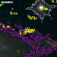 Object #14837 x,y = (930, 5393) RA, Dec = (04:54:21.768, 02:57:15.84) = (73.59070, 2.95440) BPZ = 0.341 [0.135--3.423] type = 11.00 (SB11_A_0_l) chisq2 = 0.31 ODDS = 0.07 z_cluster = 0.203