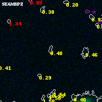 Object #14848 x,y = (3799, 5380) RA, Dec = (04:54:10.272, 02:57:14.76) = (73.54280, 2.95410) BPZ = 0.483 [0.088--3.337] type = 8.20 (SB1_B10 - SB2_B10) chisq2 = 0.00 ODDS = 0.12 z_cluster = 0.203