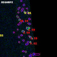 Object #14988 x,y = (7297, 5340) RA, Dec = (04:53:56.280, 02:57:12.60) = (73.48450, 2.95350) BPZ = 1.592 [1.487--1.892] type = 11.00 (SB11_A_0_l) chisq2 = 1636.79 ODDS = 0.84 z_cluster = 0.203