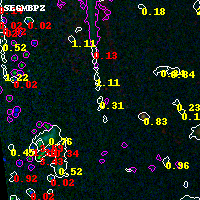 Object #14997 x,y = (594, 4394) RA, Dec = (04:54:23.112, 02:56:15.72) = (73.59630, 2.93770) BPZ = 0.306 [0.151--4.149] type = 7.70 (SB1_B10 - Scd_B10) chisq2 = 0.51 ODDS = 0.05 z_cluster = 0.203