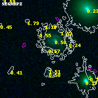 Object #15370 x,y = (4332, 5100) RA, Dec = (04:54:08.136, 02:56:58.20) = (73.53390, 2.94950) BPZ = 0.575 [0.248--2.338] type = 9.50 (SB3_B10 - SB2_B10) chisq2 = 0.01 ODDS = 0.12 z_cluster = 0.203