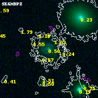 Object #15436 x,y = (4345, 5118) RA, Dec = (04:54:08.088, 02:56:59.28) = (73.53370, 2.94980) BPZ = 0.496 [0.030--0.577] type = 7.70 (SB1_B10 - Scd_B10) chisq2 = 0.00 ODDS = 0.55 z_cluster = 0.203