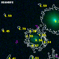 Object #15528 x,y = (4325, 5149) RA, Dec = (04:54:08.184, 02:57:01.08) = (73.53410, 2.95030) BPZ = 1.098 [0.434--2.700] type = 10.80 (SB11_A_0_l - SB3_B10) chisq2 = 0.52 ODDS = 0.10 z_cluster = 0.203