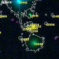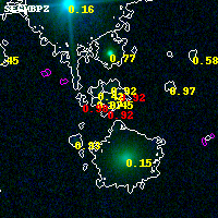 Object #15550 x,y = (5608, 5118) RA, Dec = (04:54:03.048, 02:56:59.28) = (73.51270, 2.94980) BPZ = 0.919 [0.211--2.327] type = 10.00 (SB3_B10) chisq2 = 1.54 ODDS = 0.16 z_cluster = 0.203