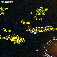 Object #15862 x,y = (2640, 5033) RA, Dec = (04:54:14.928, 02:56:54.24) = (73.56220, 2.94840) BPZ = 2.980 [2.090--3.127] type = 6.90 (Scd_B10 - Sbc_B10) chisq2 = 0.24 ODDS = 0.52 z_cluster = 0.203